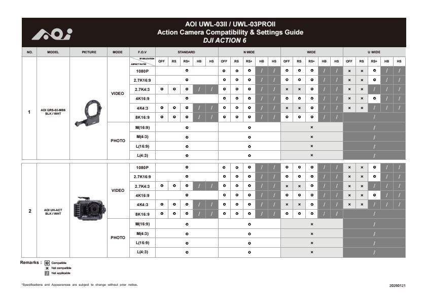 MODEL AOI QRS-02-MB6-BLK AOI QRS-02-MB6-WHT