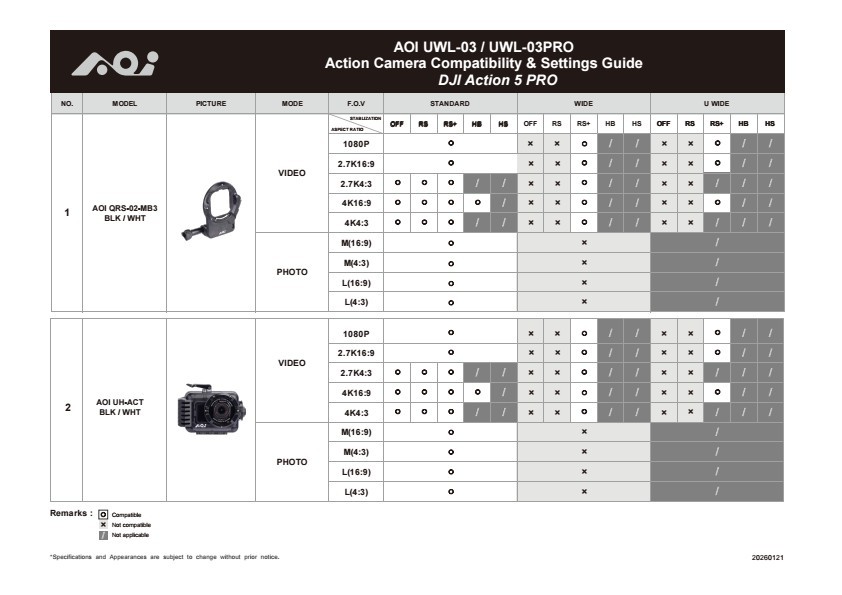 MODEL AOI QRS-02-MB5-BLK AOI QRS-02-MB5-WHT